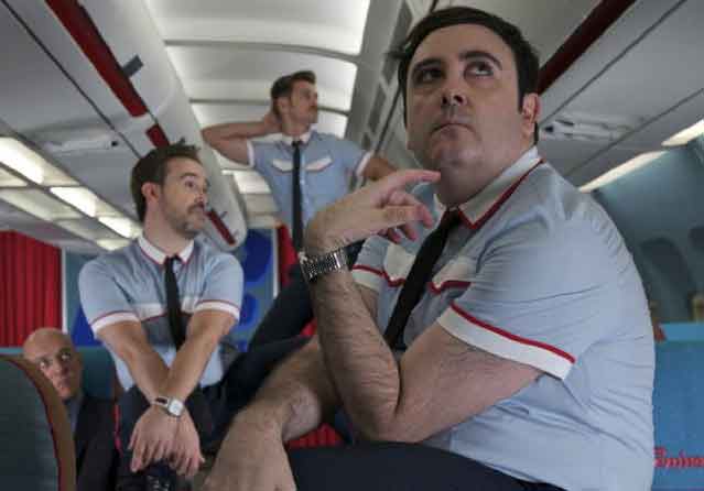Toutefois chez Almodovar, la métaphore sociale n’est jamais gratuite. Sous l’allégorie, se cache une Espagne ravagée par la crise et un message sur le désespoir des classes moyennes, en perte de droits sociaux et accablée par le chômage. La péninsule ibérique est comparée à un avion qui vole sans savoir où atterrir. Le gouvernement et les promoteurs du pays sont corrompus et sans cesse visés par Almodovar tout au long du film. Pourtant les habitants n’ont pas perdu le sens de la jubilation, et son goût des excès. Il ne faut qu’un pas pour élargir cette allégorie à la corruption généralisée des sociétés contemporaines, la France n’étant pas en reste, avec l’affaire Kahuzac, et bloquée dans des débats sur le mariage homosexuel. Effectivement, ne sommes nous pas tous, comme les passagers somnolents de la classe économique, en perte d’idéaux et assommés par la langue de bois des politiques, leur corruption, et leurs promesses électorales peu tenues ? Ainsi, la vie dans les nuages est aussi compliquée que sur terre, pour les mêmes raisons, qui se résument à deux mots : « sexe » et « mort ». Nous évoluons tous entre Eros et Thanatos dirait Freud. Si le film perd de son rythme vers le milieu, c’est parce qu’il sort de l’avion et décrit le sol, beaucoup moins intéressant. Alors qu’à l’intérieur, la croisière s’amuse, tout en se confessant.