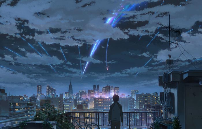 Si la réussite visuelle de Your Name. n’a rien d’une surprise pour Makoto Shinkai, le cadre scénaristique, quant à lui, aurait pu souffrir d’un cruel manque de maturité. Ce fut d’ailleurs la majorité des reproches faite au cinéaste pour Voyage vers Agartha, dont l’inutile complexité empêchait l’implication totale du spectateur. De même, Shinkai est connu pour manier l’émotion avec grandiloquence et parfois, avec lourdeur, comme il est possible de le voir dans 5 centimètres par seconde. Le réalisateur récidive avec Your Name., jouant constamment sur le fil du rasoir, entre gaieté et naïveté, parfois communs dans certains traits d’humour. Pourtant, le long-métrage ne franchit jamais la ligne rouge de l’excès émotionnel, réussissant l’exploit d’allier joie, tristesse et mélancolie au sein même des thématiques abordées. Your Name. est un exploit car il réussit à cumuler une part colossale de sujets passionnants quoique déjà largement traités, tout en les canalisant de parfaite manière afin de les transmettre totalement au spectateur. Il en résulte une séance absolument inespérée, touchant à l’émotion brute pour un véritable parcours du combattant émotionnel. On en ressort littéralement bouleversé, avec une motivation sentimentale proche de l’euphorie. D’autant que Your Name. ne se contente pas d’une banale histoire d’amour, jonchée d’obstacles, dans un récit prétexte à des scènes comiques. En réalité, Makoto Shinkai transcende un récit initialement simple, en le transformant en sujet universel. Entre la question du genre, de la quête identitaire ou encore celle de la solitude, Your Name. déborde de thématiques riches en interprétations, se posant ainsi comme un hymne à la tolérance et à l’abnégation. Croire en ses rêves jusqu’au bout, quitte à sacrifier une zone de confort si difficile à obtenir, dépasser ses limites ou encore savoir prendre confiance en soi, le long-métrage développe avec une facilité déconcertante, l’ensemble de ces questionnements existentiels. Cela pourrait paraître excessif dans un long-métrage de seulement cent minutes mais Shinkai ne se résout jamais à la facilité, sublimant chaque dialogue et situation, permettant à Your Name. d’être constamment inattendue dans son déroulement. On pourra toujours critiquer le manque de linéarité parfois trop préjudiciable au récit, usant notamment à l’excès la technique du saut temporel, tantôt à raison mais également à tort, provoquant quelque fois un sentiment de frustration. Si Makoto Shinkai réussit à canaliser encore mieux son récit, on pourrait alors assister à une œuvre quasi parfaite de sa part. Dans ce sens, Your Name. est également la promesse d’un cinéma d’animation renouvelé, ouvert à des thématiques plus universelles et sachant tirer au maximum parti des outils techniques pour parfaire ses visuels.